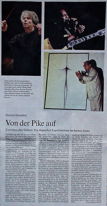Auf der letzten Seite der Ausgabe vom 18.März wird Hartmut Haenchen in einem dreispaltigen Beitrag von Dr. Eleonore Büning porträtiert. Sie schildert den steinigen Lebenslauf, die logische Entwicklung der verschiedenen Stufen und die internationale Anerkennung. Spricht über seine Wagner- und Mahler-Aufführungen und Einspielungen.